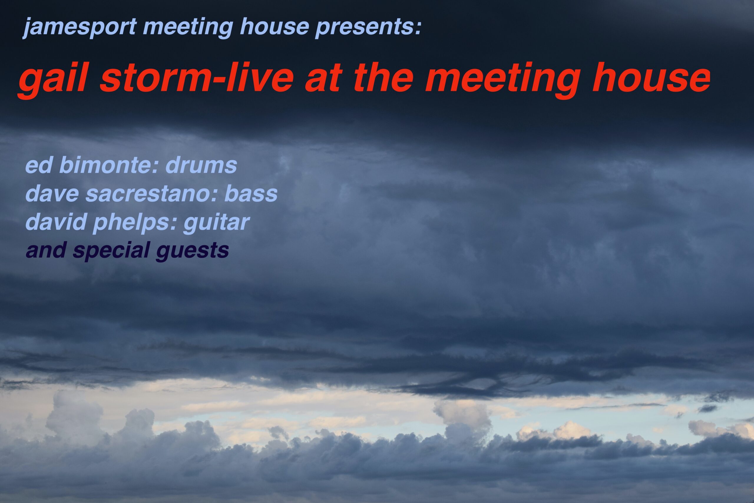 North Fork singer/songwriter/pianist Gail Storm will present her original blues/jazz-infused soundscape at the Jamesport Meeting House on Saturday, November 1 at 7:30 p.m. The concert will feature Gail Storm at piano and on vocals, joined by Ed Bimonte on drums, Dave Sacresanto on bass, David Phelps on guitar and other special guests. Tickets are only $20 and include a reception with the artists following the concert. Advance purchase is recommended. Please note that the performance will be recorded. For more information about the artist visit: www.gailstormmusic.com.